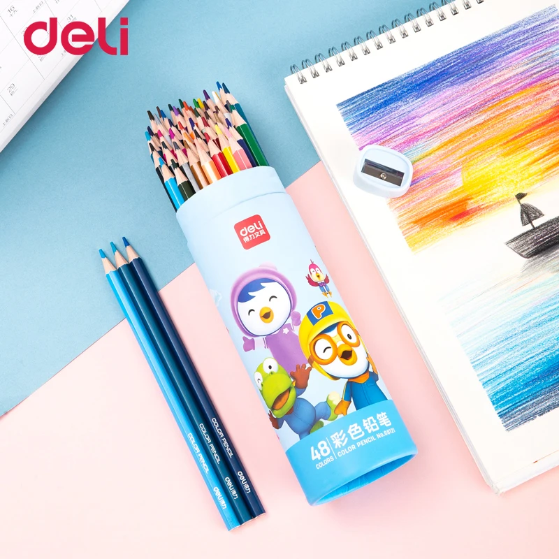 Best DELI Pororo Friends 12/24/36/48 colour pencil professional drawing color lead brush art supplies