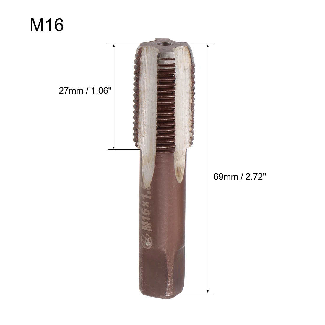 uxcell Metric Hand Tap M16 Thread 1.5 Pitch 4 Straight Flutes H2 Alloy Tool Steel 2 Pairs